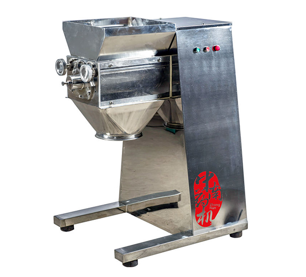 本系列设备制作的颗粒适合于压片和颗粒剂。最大特点之一是:制是由于制粒的关健部件——七角滚筒设计、材料选择、加工工艺好。七角滚筒上的空心三角筋,是从异形不锈钢管厂特别定制的。制粒时,七角滚筒作摇摆往复运动,由于空心三角筋重量较实心筋轻,因而可减小因惯性产生的阻力,同时空心三角筋有弹性,微小的变形可使挤压力更柔和。我厂采用了光学定位工模,确保七根三角筋与两端转轴的同心度一致,因而制出的颗粒均匀。本机第二个特点是:力量大。这是因为与电机相配用的蜗轮、蜗杆减速机构设计极具合理性。同时增加了重型和超重型,对粘稠物料也能轻松完成制粒。本系列设备凡与物料接触处和外壳均为不锈钢,符合GMP标准。